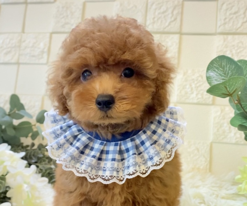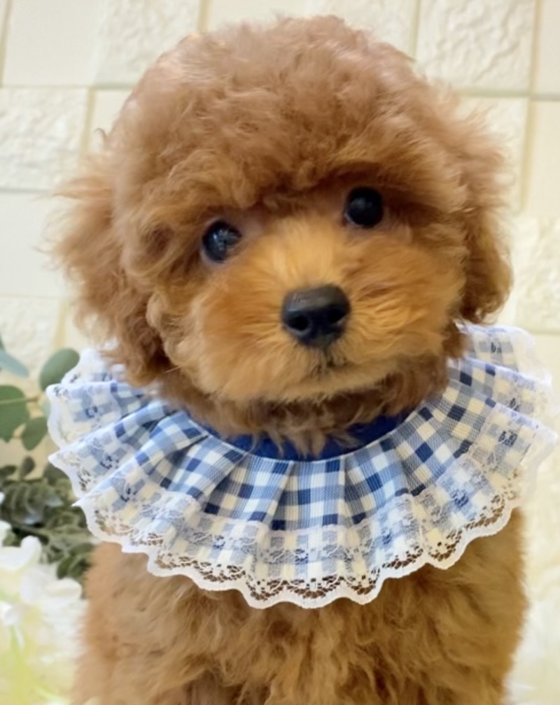 お顔も可愛くベビーフェイスです❤️しっかりサイズの子になるので、初めてプードルちゃんをお迎えされるご家族にもおすすめです。狼瘡あり、生活上問題はありません。臍ヘルニアあり。