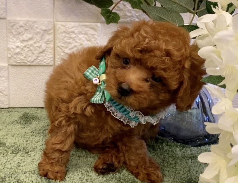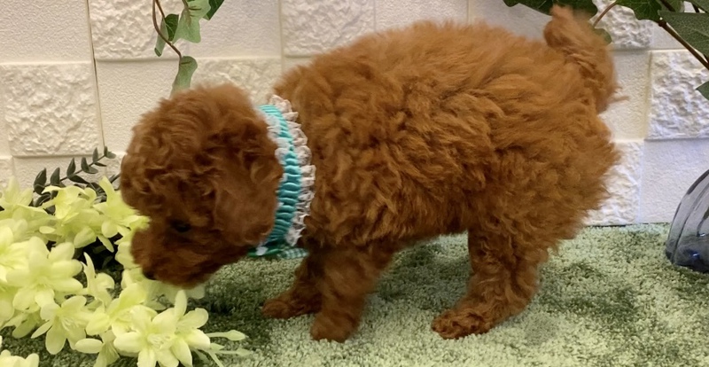 色の濃いレッドの女の子です。しっぽフリフリと呼ぶと来てくれとっても可愛い子になります^ ^兄妹達ともよく遊び、元気に走り回っています♪ぜひ実際に会いに来てくださいね^ ^