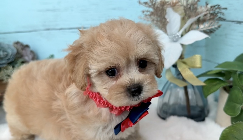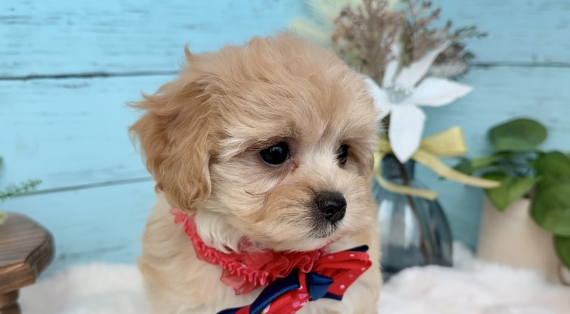 お顔はパパのマルチーズ寄りのお顔でまん丸頭とまん丸おめめがとっても可愛いです(^^)!!