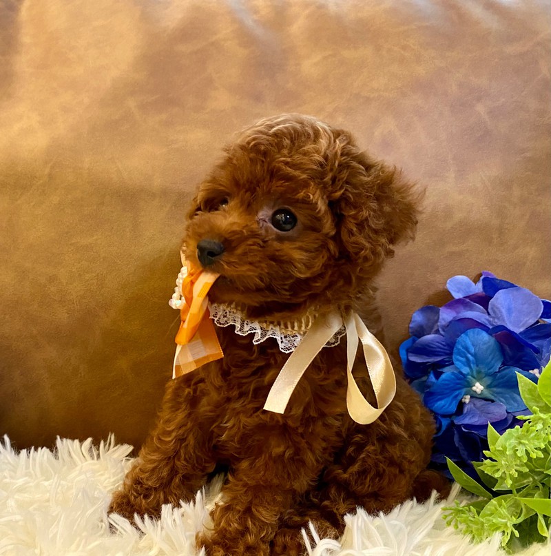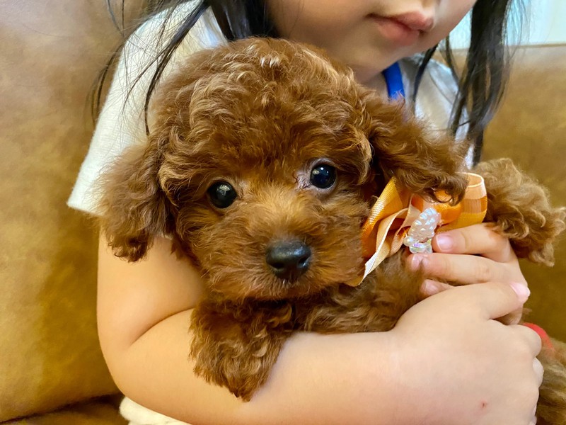 ⭐︎オーナー様決まりまた⭐︎お顔の可愛い子です♡また小柄でトイプードルの中でも小さくまとまる予想です。わちゃわちゃするタイプではなく、おっとりとしていて抱っこが大好きな甘えん坊さんです