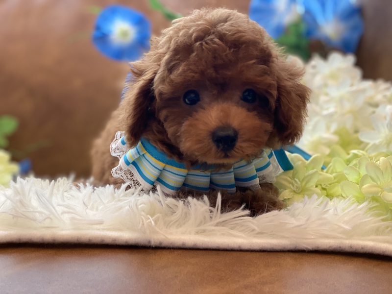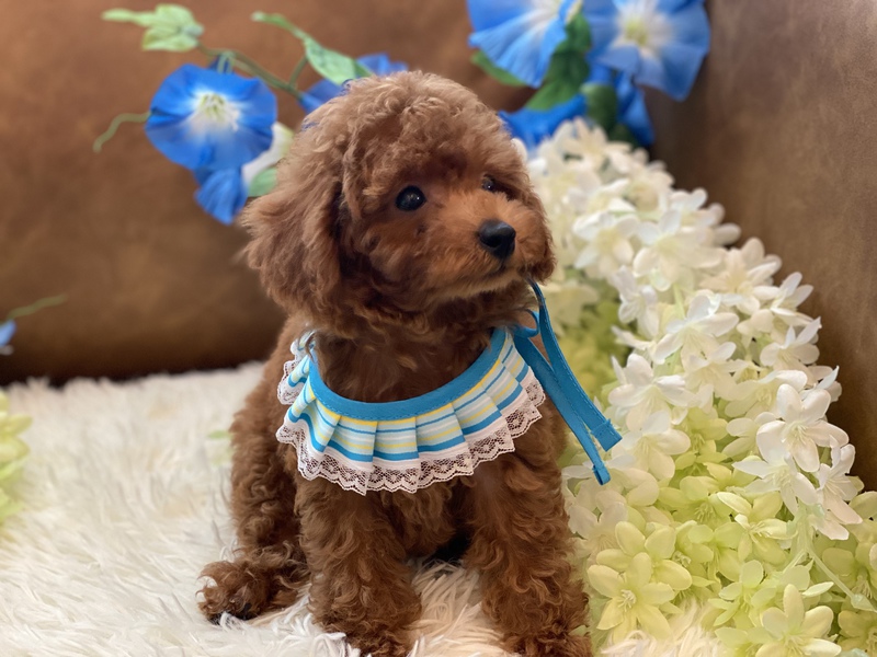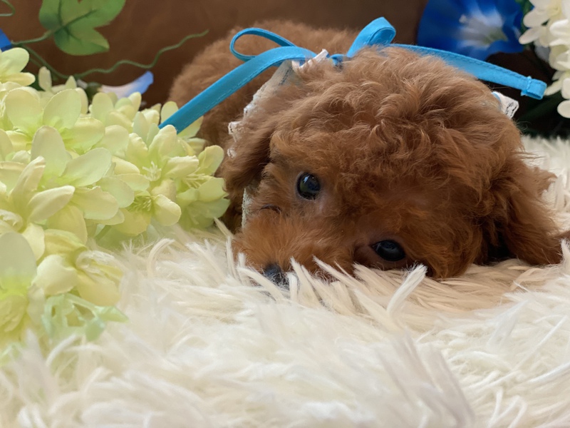 お顔のまん丸なとっても可愛い男の子です(^^)成長しても可愛いままのベビーフェイスです♪明るく社交的な性格ですので、小さいお子様のいるご家族や初めてプードルちゃんをお迎えするご家族へもお勧めできます(^_^)人が大好きで、可愛い尻尾をふりふりとしてくれる子ですよ(о´∀`о)